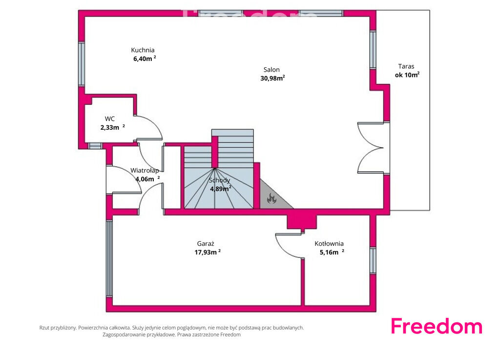 6,40 m2WC 2,33 m2Garaż 17,93 m2Kotłownia 5,16 m2Schody 4,89 m2Razem